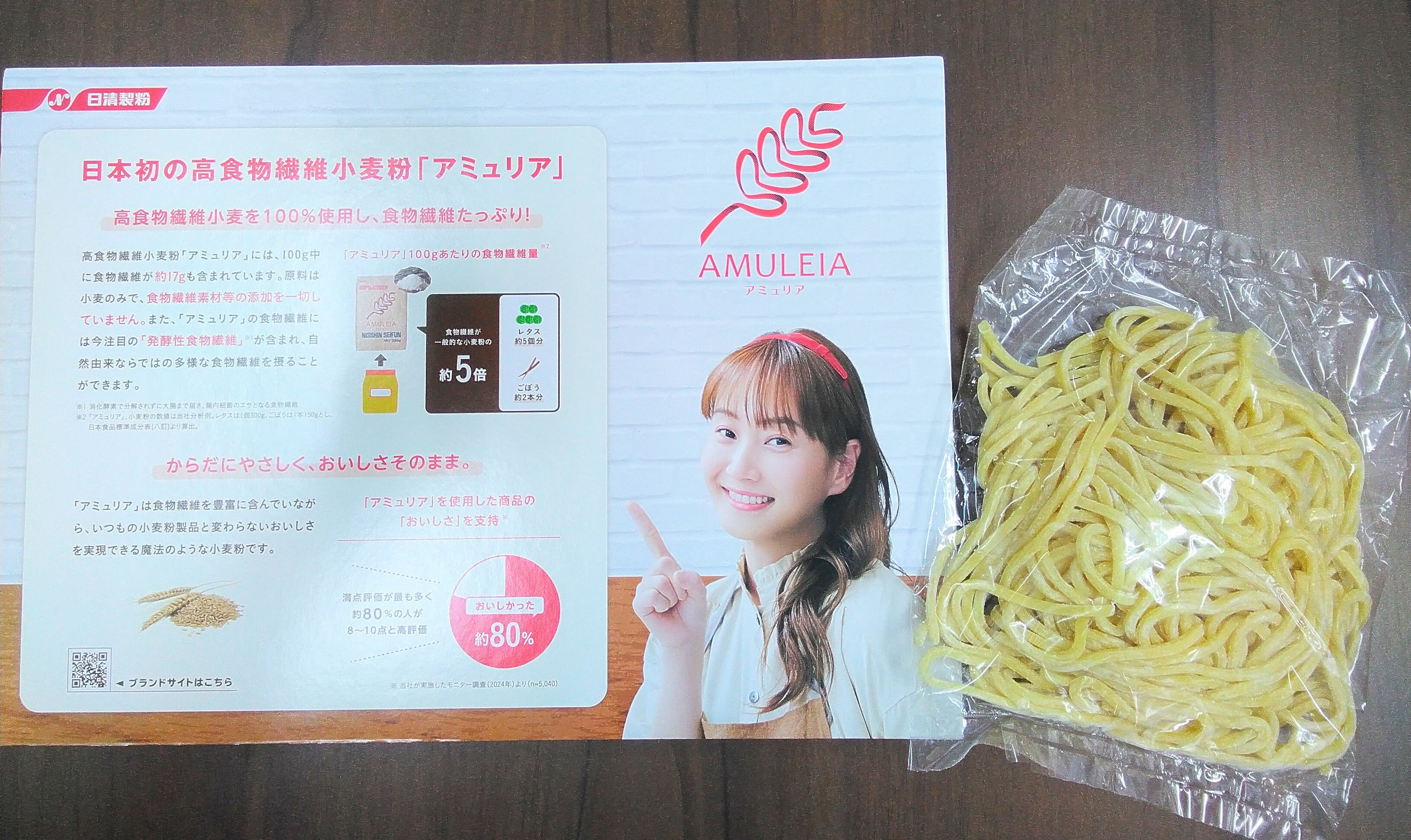 従来品の約5倍の食物繊維を含む高食物繊維小麦粉「アミュリア」。